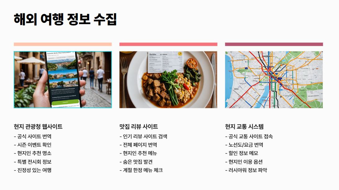 1. 해외 여행 준비를 위한 현지 정보 수집의 달인 되기